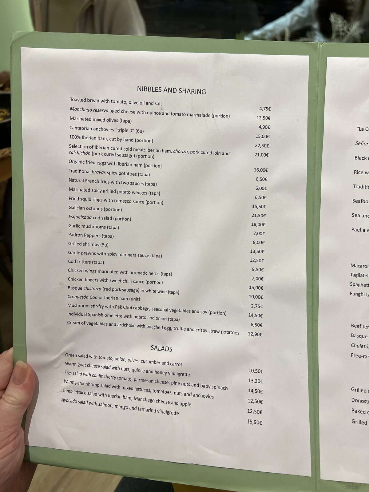 - The menu del día at lunch is outstanding value. Two courses, a drink, bread, and sometimes dessert for around €15 to €25. Do not skip this.